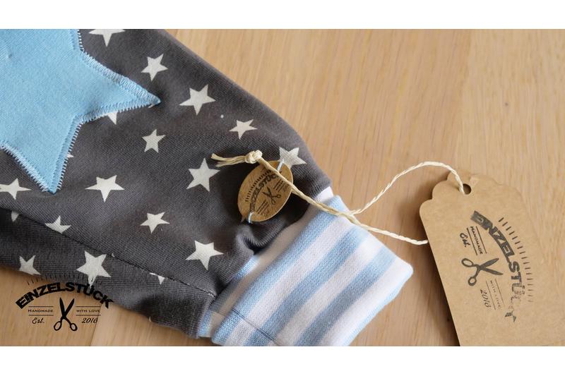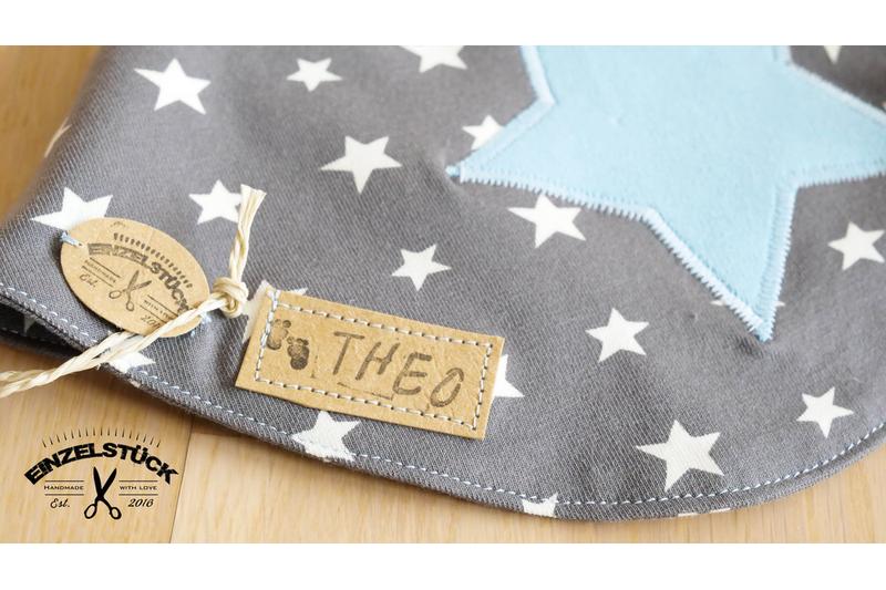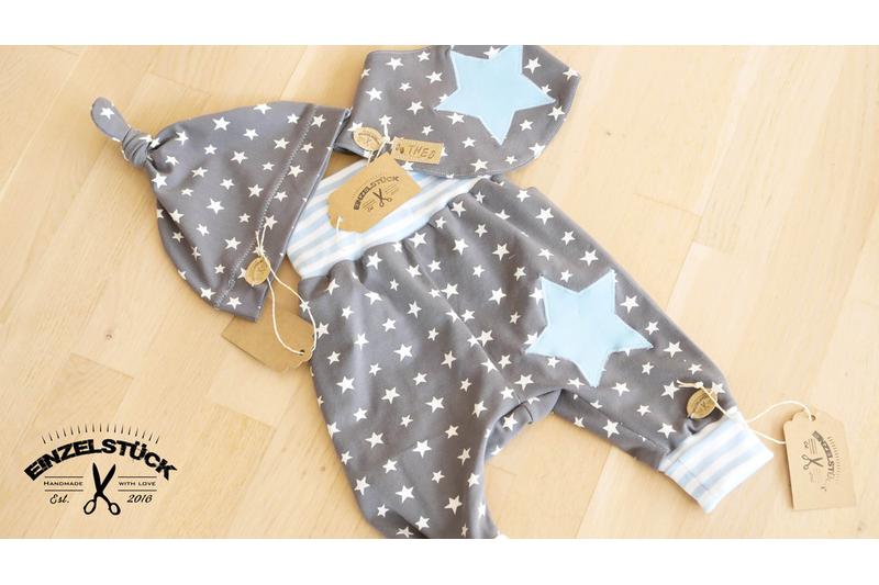 Das besondere Geschenk zur Ankunft ihres neuen Erdenbürgers. Individuell hergestelltes zuckersüßes Babyset, das durch seinen besonders bequemen Schnitt und den extralangen Bündchen mitwachsen kann. Das Set besteht aus einer gemütlichen weichen Pumphose, einer Mütze und einem Wendhalstuch.Ein besonderer Hinkucker sind die exakt aufgenähten Sterne. Gegen einen Aufpreis von 5,-€ versehe ich die Mütze und das Wendhalstuch gerne mit dem Namen ihres Babys. Der Namenspatch ist aus SnapPap (veganes Leder)und nach dem Waschen weich wie echtes Leder. Sie können das Set in folgenden Größen bestellen: Gr. 56 - 62 Gr. 62 - 68 Gr. 68 - 74 Gr. 74 - 80 Bitte die Größe und den Namenswusch nach dem Bestellvorgang angeben. Material: Baumwolljersey 95% Baumwolle, 5% Elastan Maschinenwäsche 40° trocknergeeignet (erprobt durch viele Babys ;-))