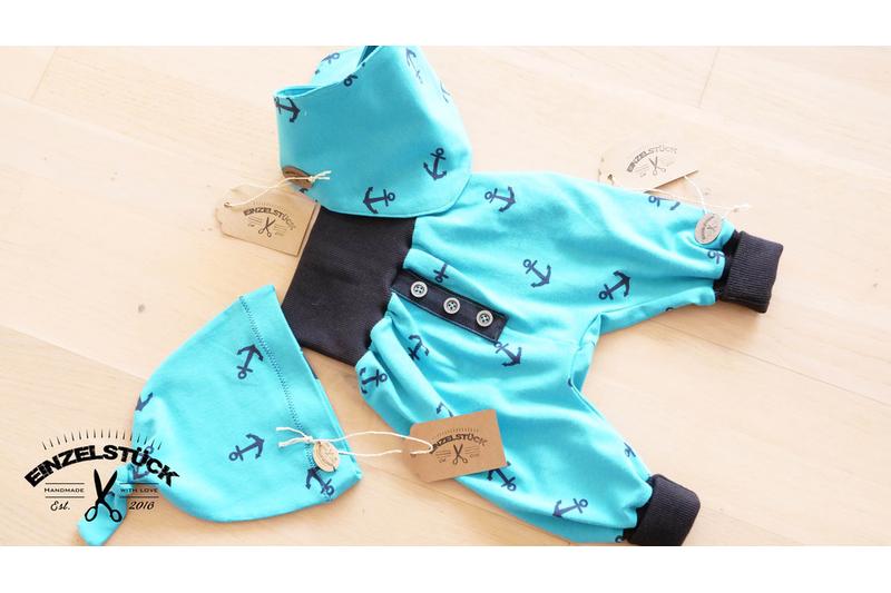 Das besondere Geschenk zur Ankunft ihres neuen Erdenbürgers. Individuell hergestelltes zuckersüßes Babyset, das durch seinen besonders bequemen Schnitt und den extralangen Bündchen mitwachsen kann. Das Set besteht aus einer gemütlichen weichen Pumphose, einer Mütze und einem Wendhalstuch.Ein besonderer Hinkucker sind die exakt aufgenähten Sterne. Gegen einen Aufpreis von 5,-€ versehe ich die Mütze und das Wendhalstuch gerne mit dem Namen ihres Babys. Der Namenspatch ist aus SnapPap (veganes Leder)und nach dem Waschen weich wie echtes Leder. Sie können das Set in folgenden Größen bestellen: Gr. 56 - 62 Gr. 62 - 68 Gr. 68 - 74 Gr. 74 - 80 Bitte die Größe und den Namenswusch nach dem Bestellvorgang angeben. Material: Baumwolljersey 95% Baumwolle, 5% Elastan Maschinenwäsche 40° trocknergeeignet